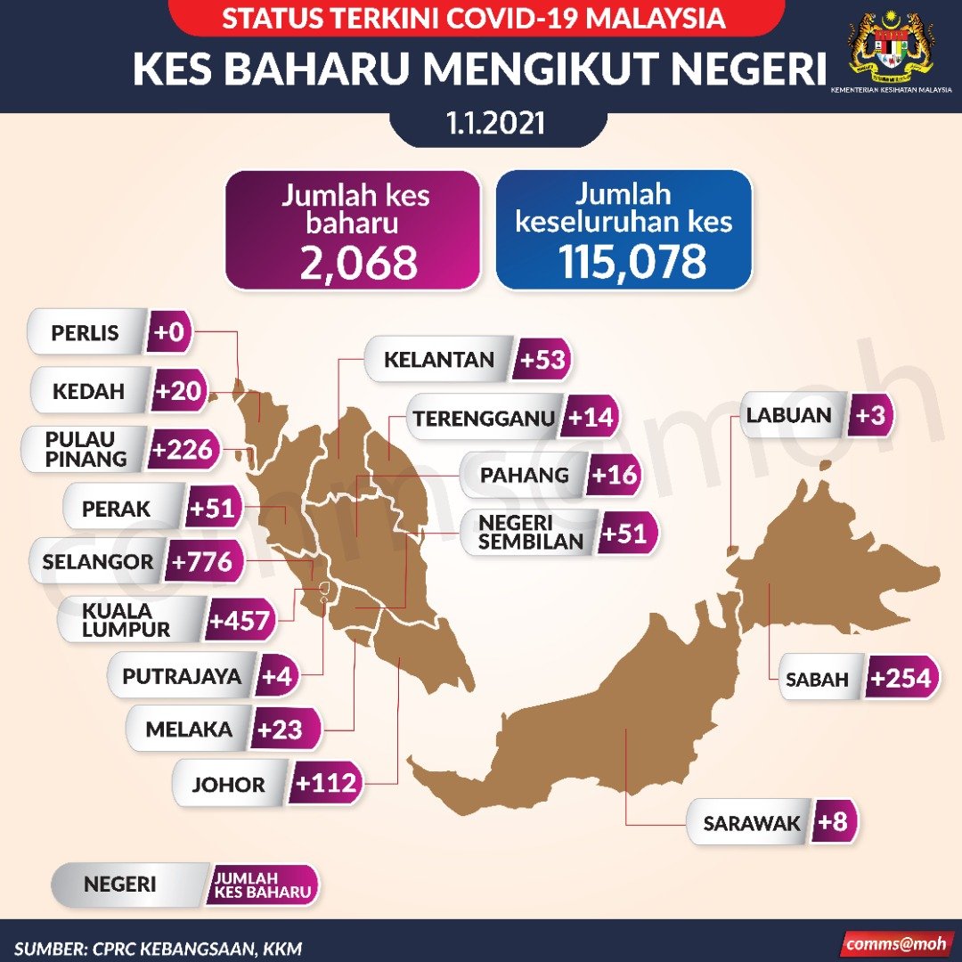 (布城1日讯)迈入新的一年,国内2019新型冠状病毒单日新增确诊病例依然维持四位数,截至今午12时共添2068宗,同时有3人病故及增加3个感染群。
