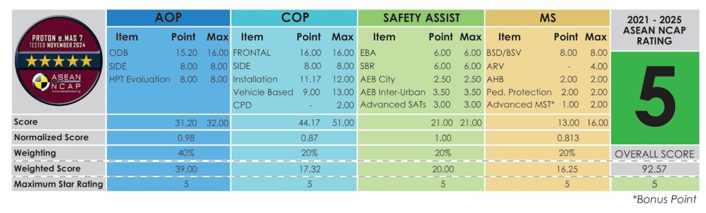 在此之前,东盟 NCAP 也为多款 Proton 车型颁发了 5 星评级,包括 Proton X70 和 X50 SUV 以及 Proton S70 轿车。此外,Proton Saga 也获得了 4 星评级。