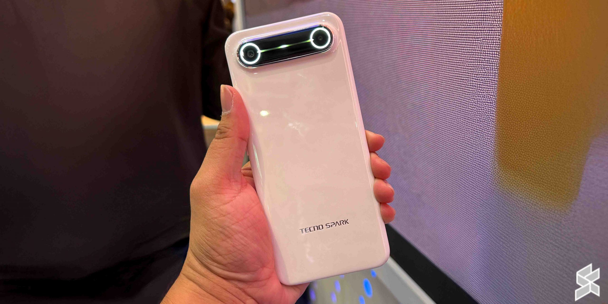Tecno展示了两款Spark Slim,一款采用陶瓷结构,另一款采用不锈钢外壳。此处显示的图片为陶瓷版本。规格方面,Tecno Spark Slim采用6.78英寸1224p显示屏,背面搭载双50MP镜头,并配有类似BayMax眼睛的LED灯带。