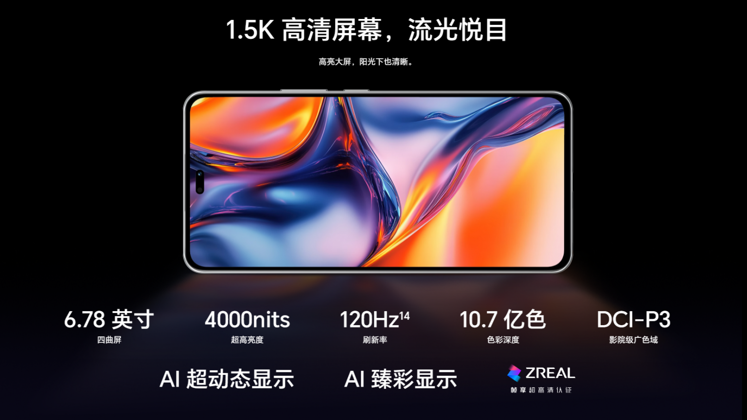 正面配备一块6.78英寸的1.5K(2700×1224)AMOLED显示屏,支持120Hz刷新率及峰值亮度达4000尼特。在相机方面,后置主摄为5000万像素f/1.95,搭载1/1.56英寸感光元件,另有一颗500万像素超广角镜头;前置相机为1600万像素f/2.45。
