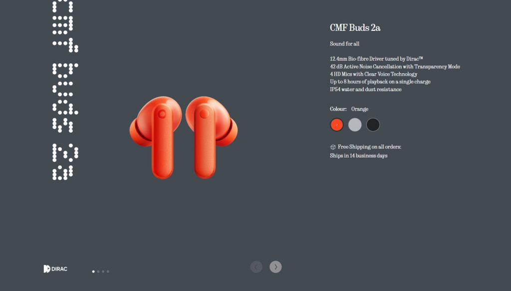 最亲民的CMF Buds 2a采用12.4mm生物纤维驱动单元,由Dirac调音,并搭载CMF Ultra Bass技术2.0。支持AAC与SBC编码。
