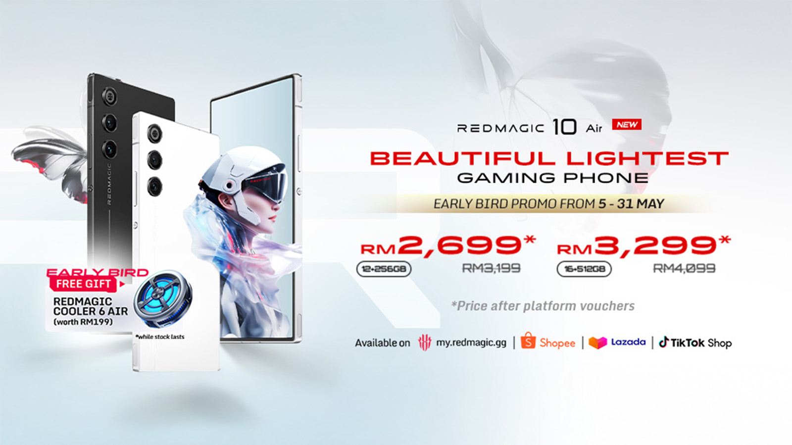 - RedMagic 10 Air (12GB+256GB) — 3199令吉(早鸟价:2699令吉)