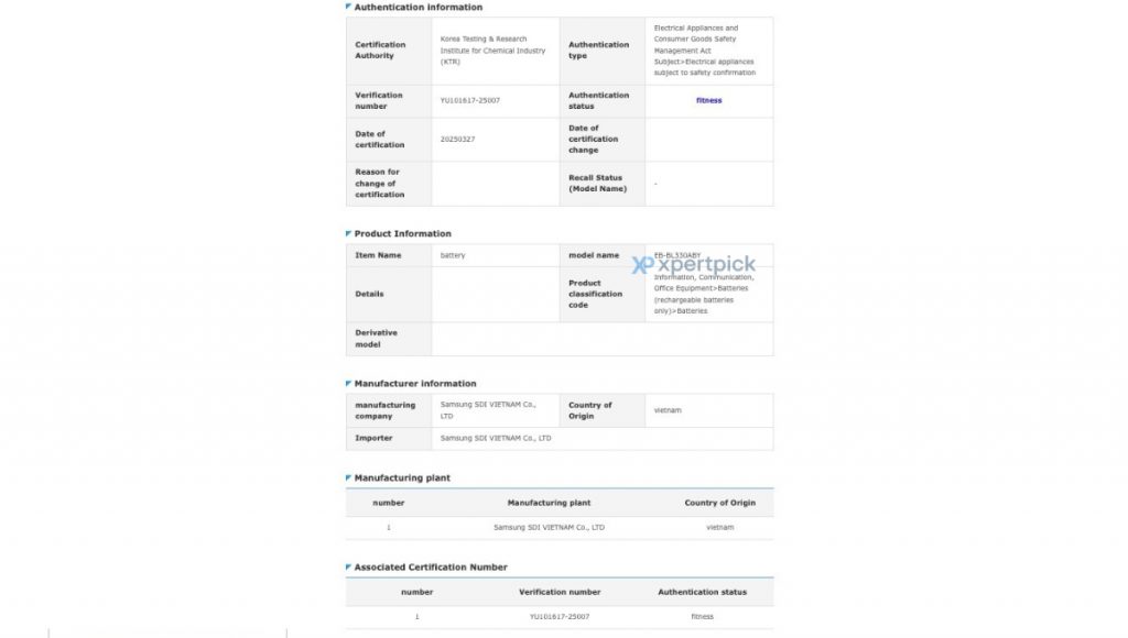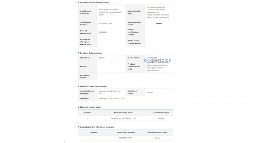 两颗容量不同的电池已通过韩国SafetyKorea的认证,该机构负责为国内消费产品提供集中化的认证、监控和资讯平台,以保障产品安全。
