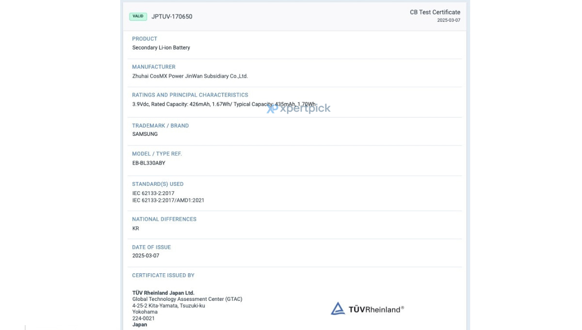 这两颗电池的代号为EB-BL330ABY和EB-BL505ABY,分别被认为是Galaxy Watch 8和Galaxy Watch 8 Classic所使用的电池。TUV Rheinland的认证进一步揭示,标准版Galaxy Watch 8将配备435mAh电池,较Galaxy Watch 7的425mAh略大。