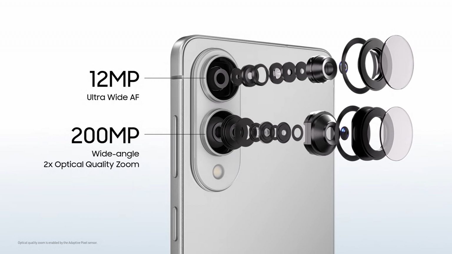 拍摄方面,Galaxy S25 Edge 采用双摄配置,并无专属长焦镜头。主摄为 2 亿像素 f/1.7 镜头,配备 OIS 光学防抖,可提供 2 倍光学级变焦;另一颗是 1200 万像素 f/2.2 超广角镜头。