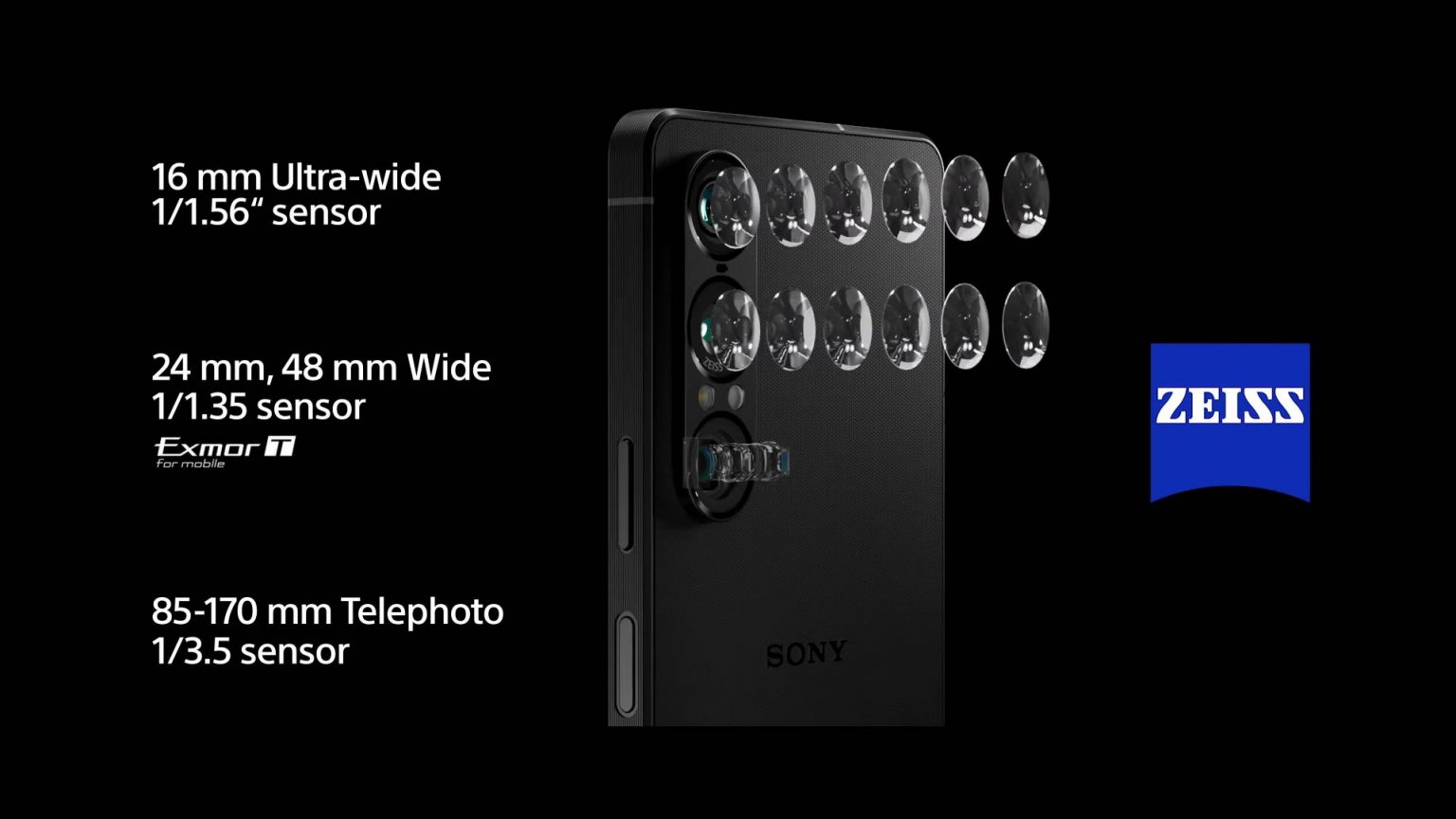 - 1200 万像素 f/2.3-f/3.5 潜望长焦镜头,85mm-170mm 变焦范围,1/3.5” Exmor RS 感光元件