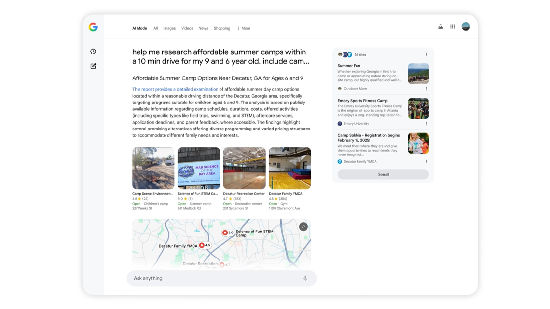 未来,AI 模式还将整合 Google 的 Project Mariner 项目,届时用户可通过 AI 模式完成如订票、餐厅预订等任务。
