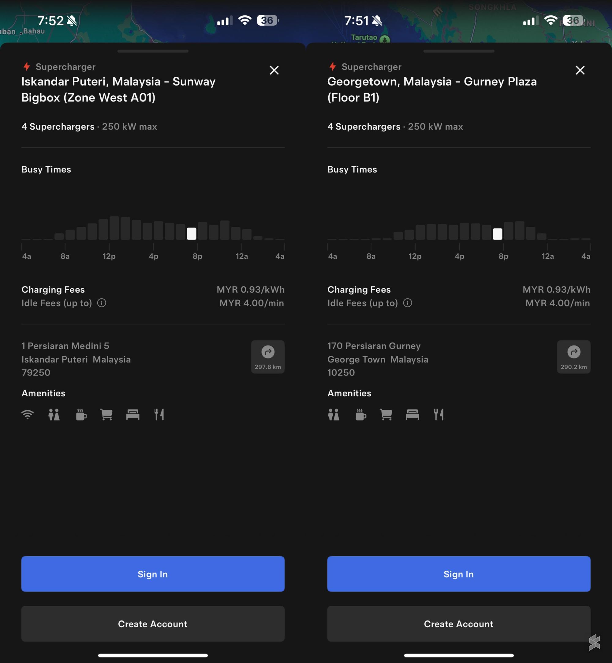 在巴生谷以外,也发现了一些特斯拉超级充电站的充电费低至每千瓦时93仙。这些地点包括柔佛依斯干达公主城的Sunway Bigbox和槟城乔治市的合您广场(Gurney Plaza)。
