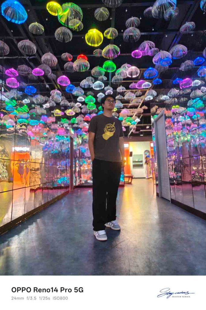 现在,我们来聊聊大家最期待的升级——相机。普通版Reno 14 5G后置三摄,分别为50MP f/1.8光圈主镜头(支持OIS光学防抖)、50MP f/2.8光圈长焦镜头(支持OIS光学防抖,3.5倍光学变焦)以及8MP f/2.2光圈超广角镜头。