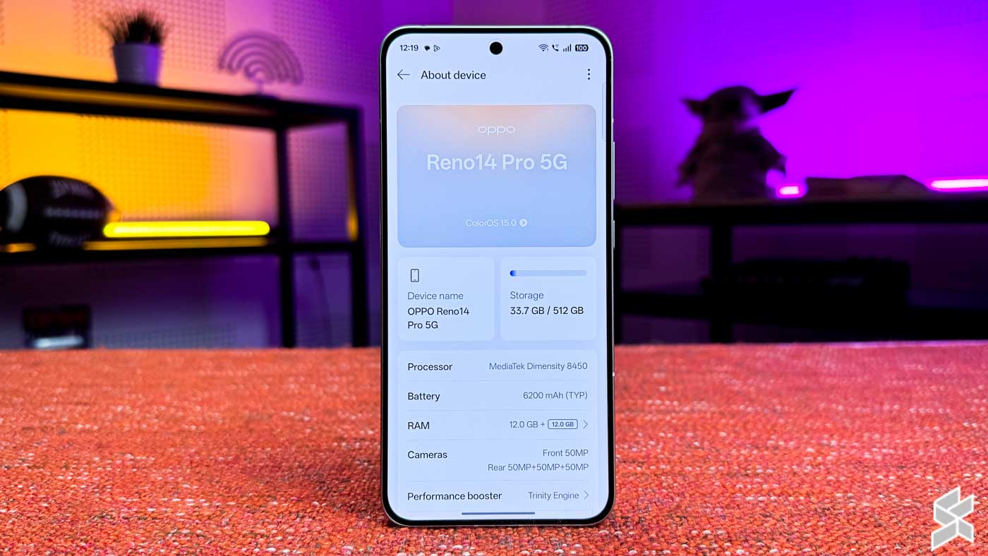 Oppo Reno 14 5G 搭载联发科(MediaTek) Dimensity 8350芯片组,而其Pro版则搭载联发科最新的Dimensity 8450芯片组。两款手机均最高可选配 12GB LPDDR5X RAM 和 512GB UFS 3.1储存空间。