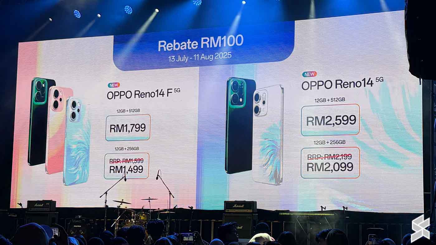 如上所述,Oppo将在2025年7月13日至8月11日期间,为Oppo Reno 14 F 5G 和 Oppo Reno 14 5G 的 12GB+256GB 配置提供100令吉回扣。