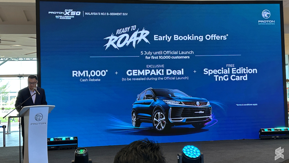 这项名为“Ready To Roar”的早鸟优惠,面向即日起至正式发布会前预订全新2026 Proton X50的首一万名顾客开放。优惠包括1000令吉现金回扣、特别版一触即通(Touch ‘n Go)卡,以及名为“Gempak! Deal”的优惠,该优惠将在SUV发布会期间公布。