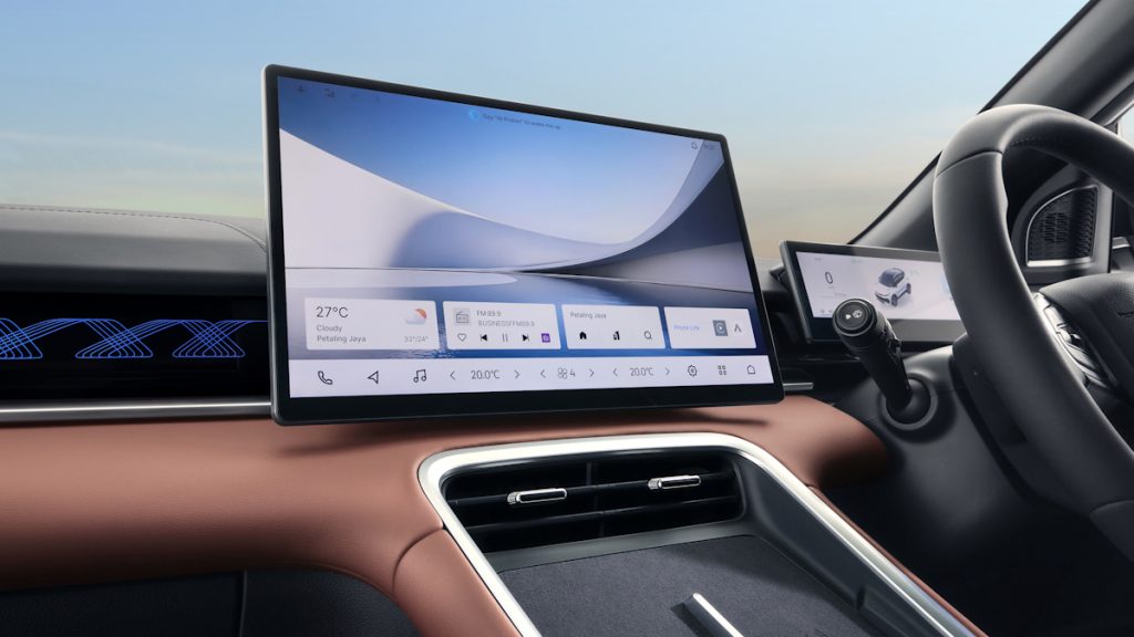 全新X50的内饰与两款吉利缤越车型截然不同,据悉,内饰由宝腾自主设计。尽管宝腾选择保留相同的方向盘,但仪表盘和中控台的设计似乎受到了Proton e.MAS 7的启发。