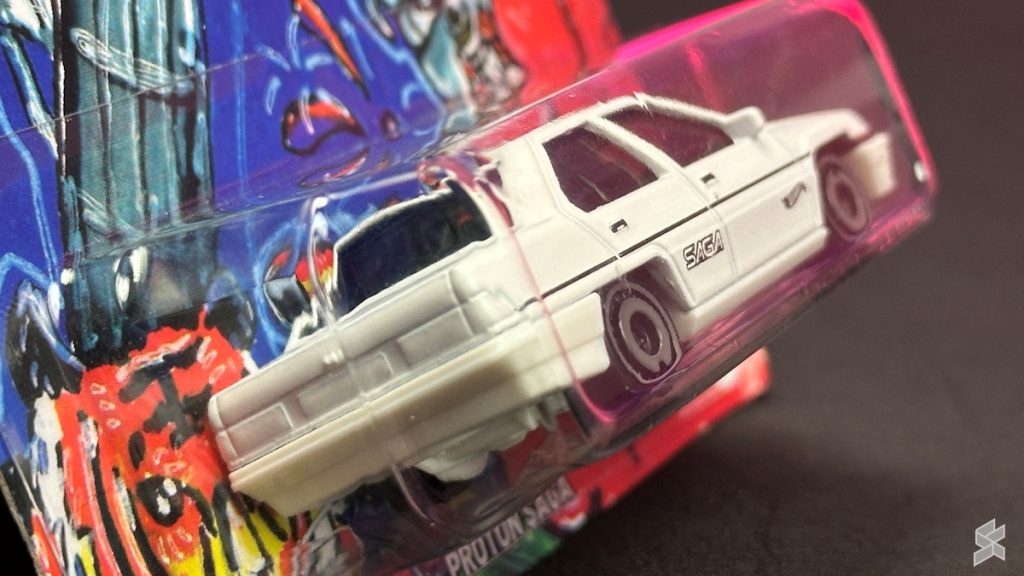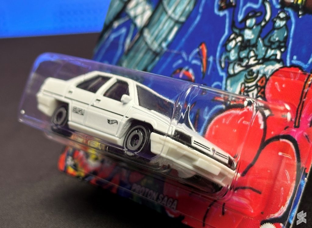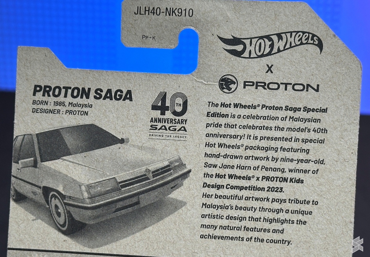 不过,最大的区别莫过于这次特别加入了“Saga 40周年纪念”标志,因此这款模型也被称为 Hot Wheels Proton Saga 40周年纪念版。