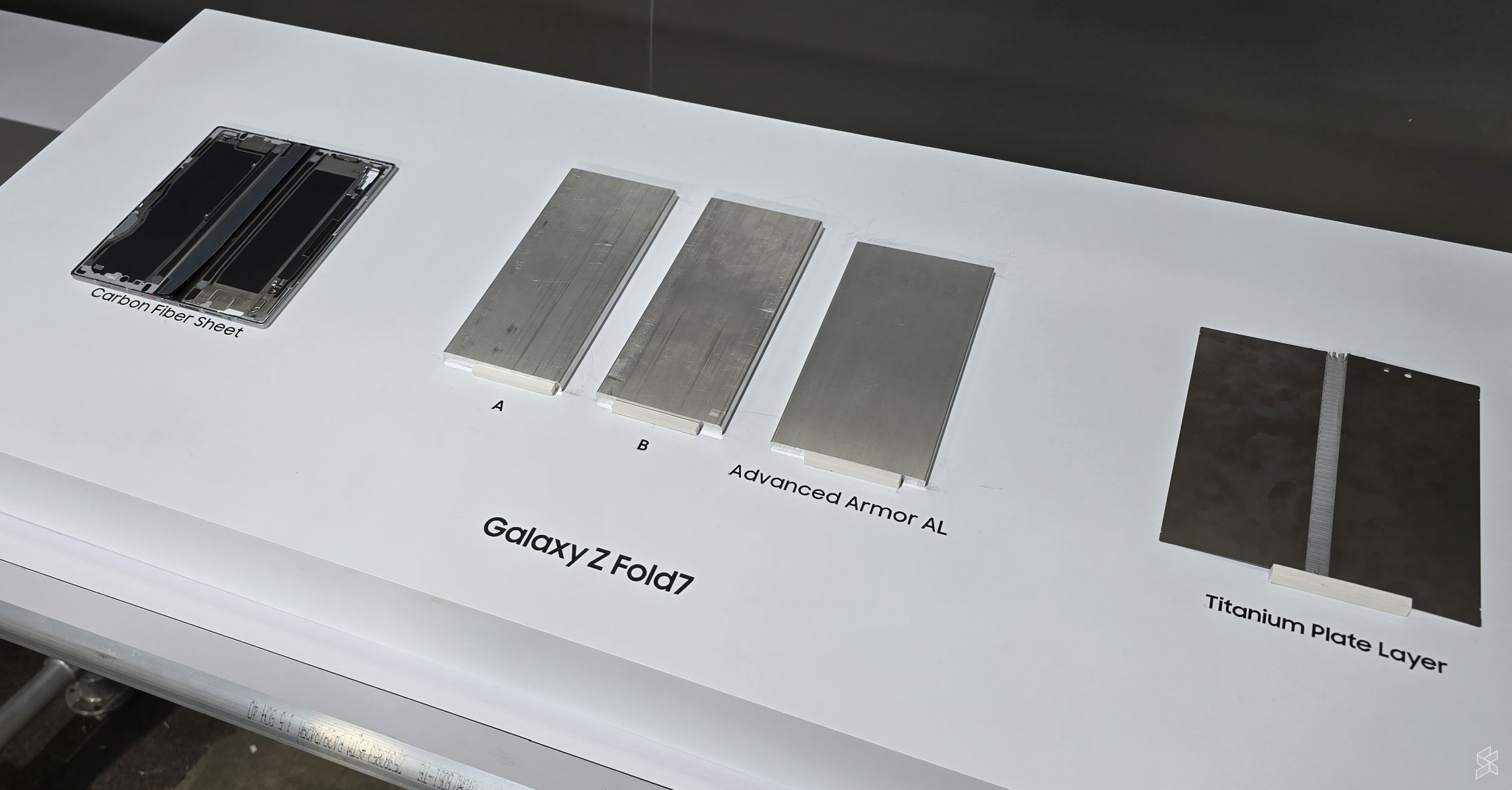如此纤薄的机身,结构完整性至关重要。三星表示,Z Fold 7加入了新一代Armor FlexHinge铰链技术,采用创新的水滴设计与多轨结构,使其更均匀分散压力、淡化折痕。