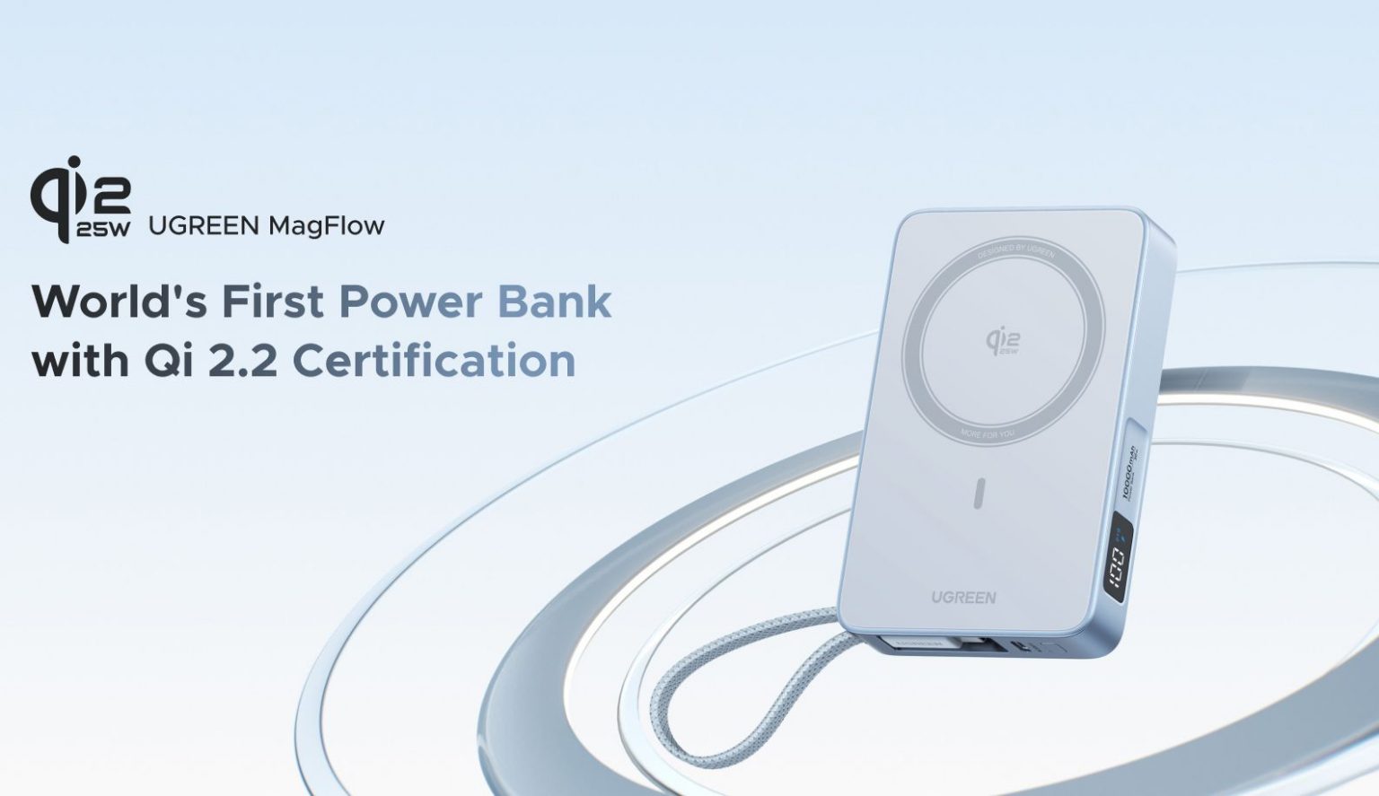 Ugreen 宣布,其最新推出的 MagFlow 磁吸无线充电宝,已成为全球首款获得无线充电联盟(WPC)官方 Qi 2.2 认证的充电宝。借助 Qi 2.2 标准,Ugreen MagFlow 可实现高达 25W 的无线快充,比常见的 Qi 2.0(最高 15W)速度更快。