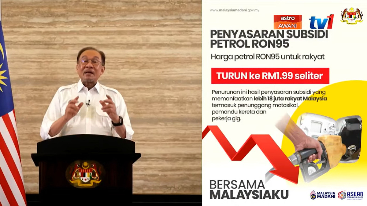 首相兼财长拿督斯里安华指出,随着计划落实RON95燃油目标式补贴,RON95价格将从每公升2令吉5仙下降至每公升1令吉99仙,保证平民百姓不受影响。