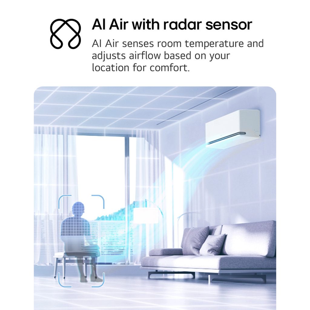如果上述都是您的烦恼,那么LG DUALCOOL AI Air 智能冷气机,就是专为追求极致生活舒适度的您而设。搭载AI Air /AI Core Tech系统,LG DUALCOOL™ AI Air能自动侦测室温变化,智慧调节风速与出风方向。