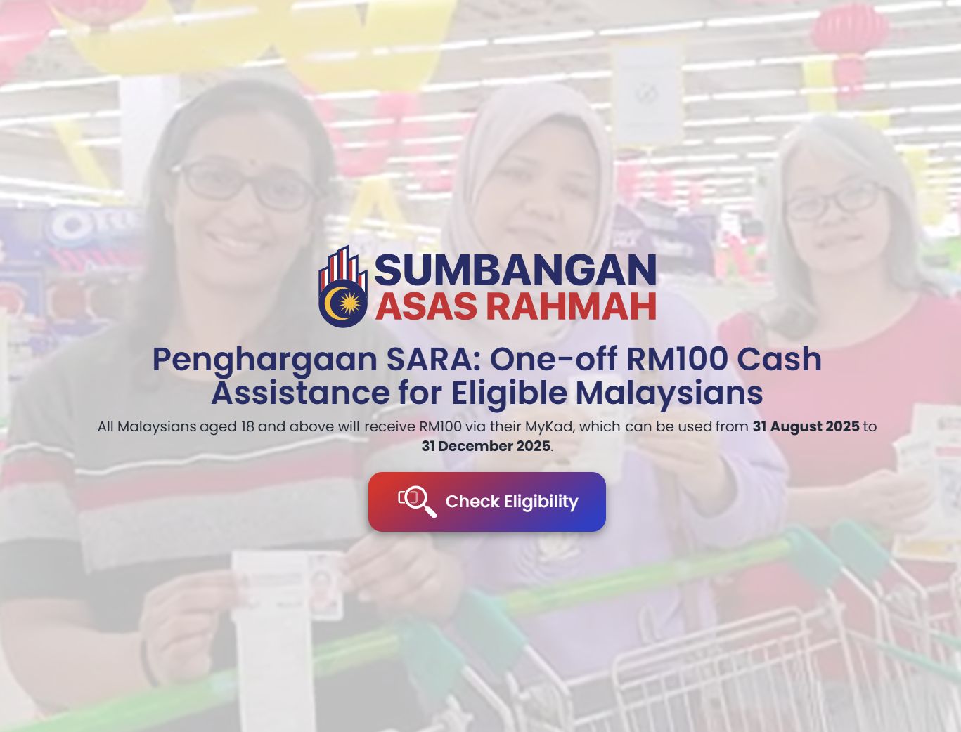 全体马来西亚成年人将在今年8月31日国庆日当天,获得100令吉的一次性基本关怀援助金(Sumbangan Asas Rahmah,简称SARA)。要查询你是否符合资格,现在就可以透过SARA官方网站进行线上检查,无需注册,也不需要任何应用程式。