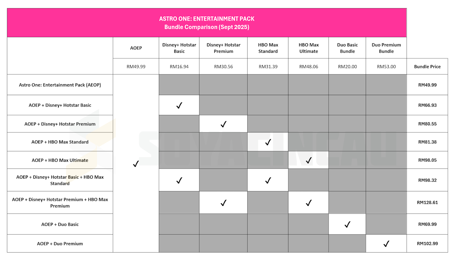 此前,若用户想要在 Astro One Entertainment Pack 中同时拥有 Disney+ Hotstar 与 HBO Max,必须分别额外订购,额外费用介于每月 48.33令吉至 78.62令吉之间。