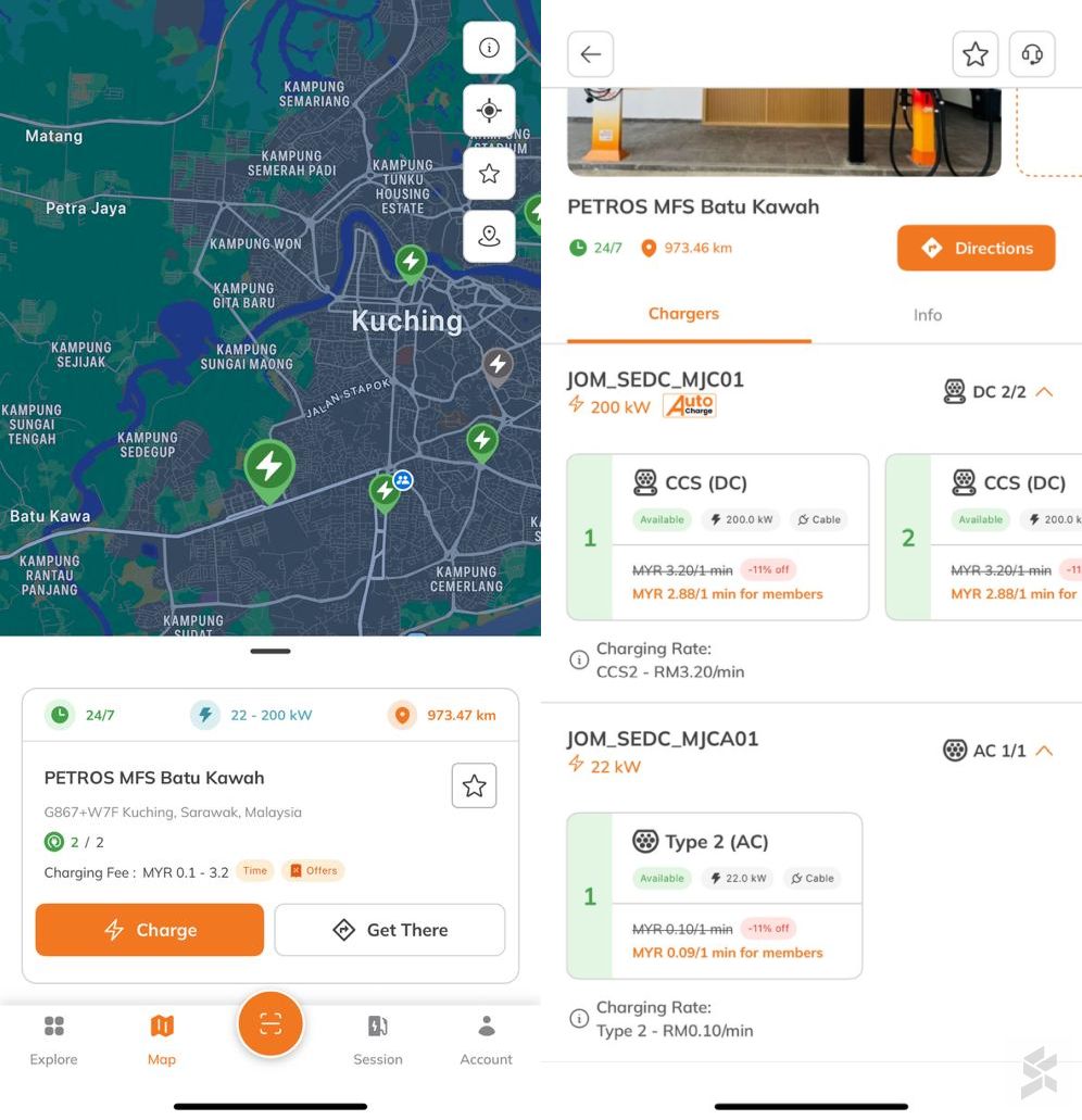 值得关注的是收费价格:这台200kW直流充电器的费用高达每分钟3.20令吉,是全国最昂贵的充电桩之一。若你是JomCharge Elite会员,则可享有9折优惠,每分钟2.88令吉。