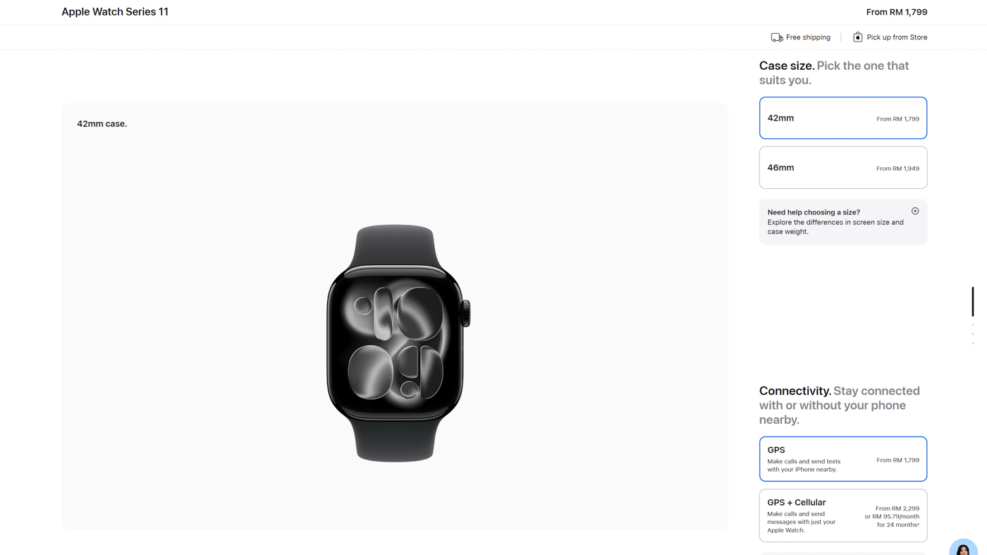 - 42mm铝金属表壳(GPS + 流动网络) — 2299令吉起