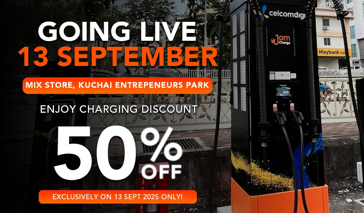 JomCharge于本周六(9月13日)在吉隆坡古仔鸿图园(Kuchai Entrepreneur Park)正式启用其全新的电动车充电桩。为庆祝这一盛事,车主在新址启用当天充电即可享受50%的充电费折扣。