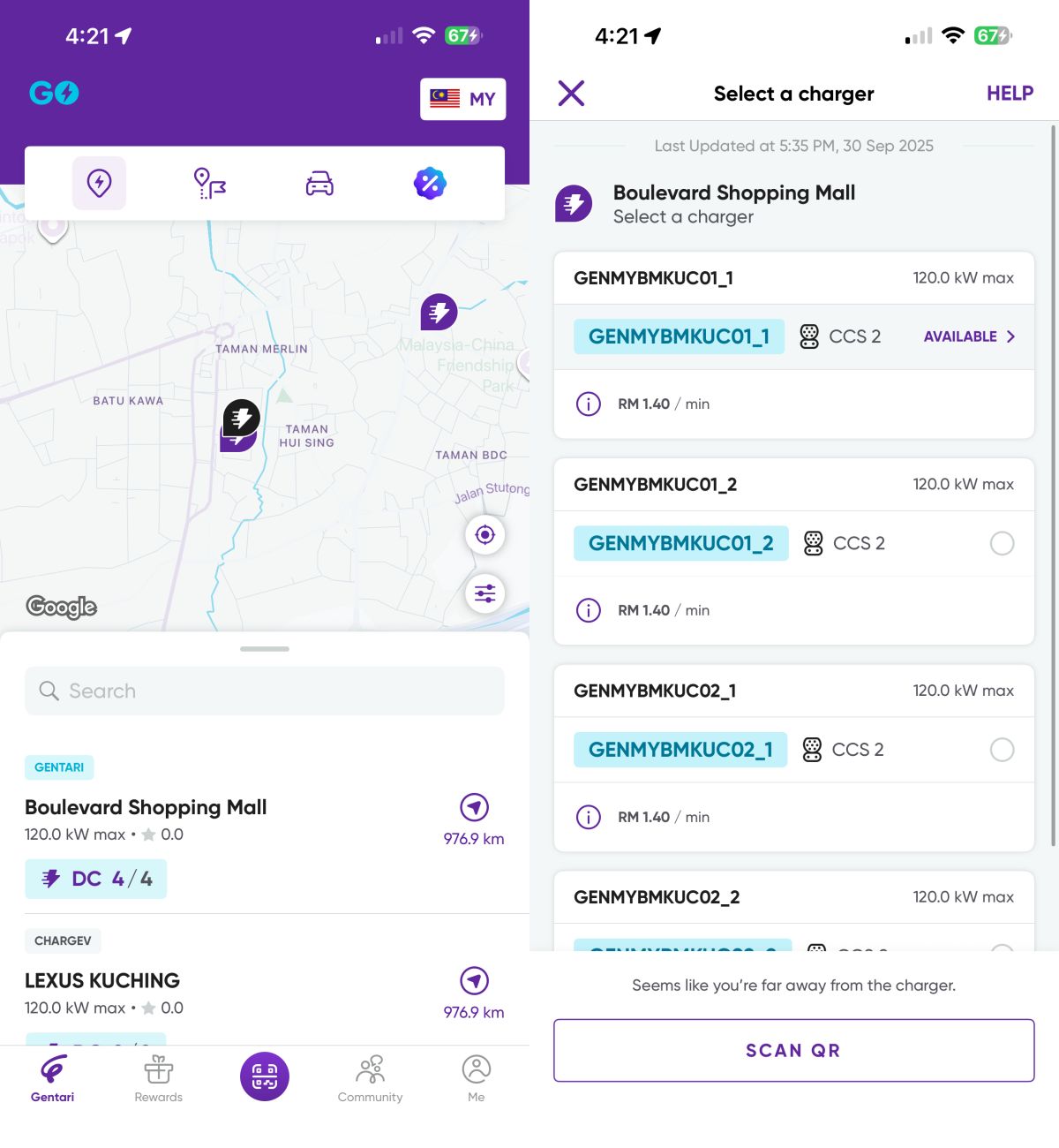 在砂拉越,只有Gentari x SEB充电桩的收费是按千瓦时计费。其他地点则采用按分钟计费。