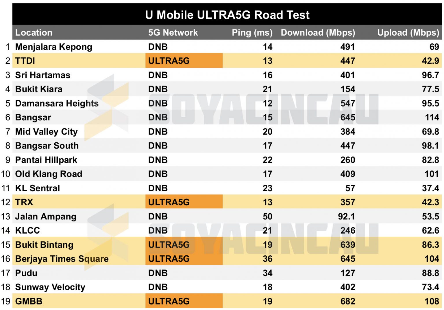 这意味着,U Mobile用户在吉隆坡仍主要依赖DNB网络来使用5G服务。