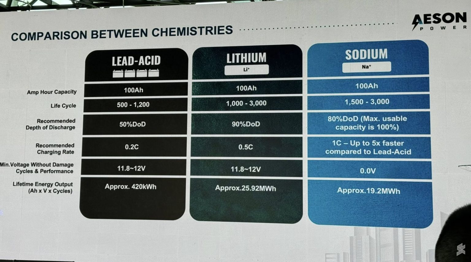 与一般铅酸电池相比,Aeson Power 的钠离子电池重量减轻高达 73%,寿命更长,也更适合马来西亚炎热气候。