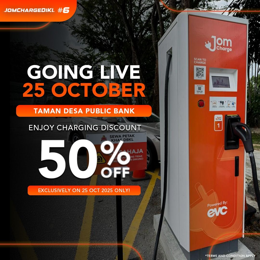 按照JomChargeDiKL的惯例,新站启用当天(2025年10月25日,星期六)将提供五折优惠。