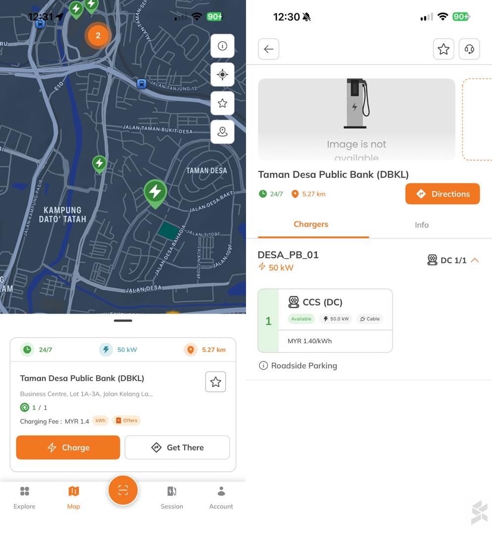 Taman Desa的这座50kW DC充电器,官方收费为每千瓦时1令吉40仙(RM1.40/kWh)。