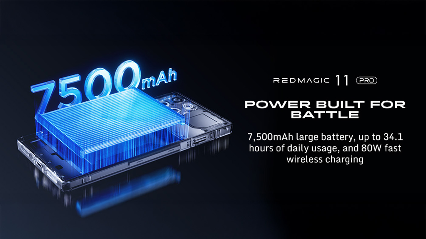 此外,它还配备了一块7500mAh的碳化硅电池,比上一代产品增加了450mAh。据RedMagic官方数据,这款手机可提供长达34.1小时的日常使用时间、12.5小时的直播时间、7.4小时的《原神》(Genshin Impact)全帧率游戏时间,以及长达267小时的待机时间。如果你好奇的话,这相当于略超过11天。
