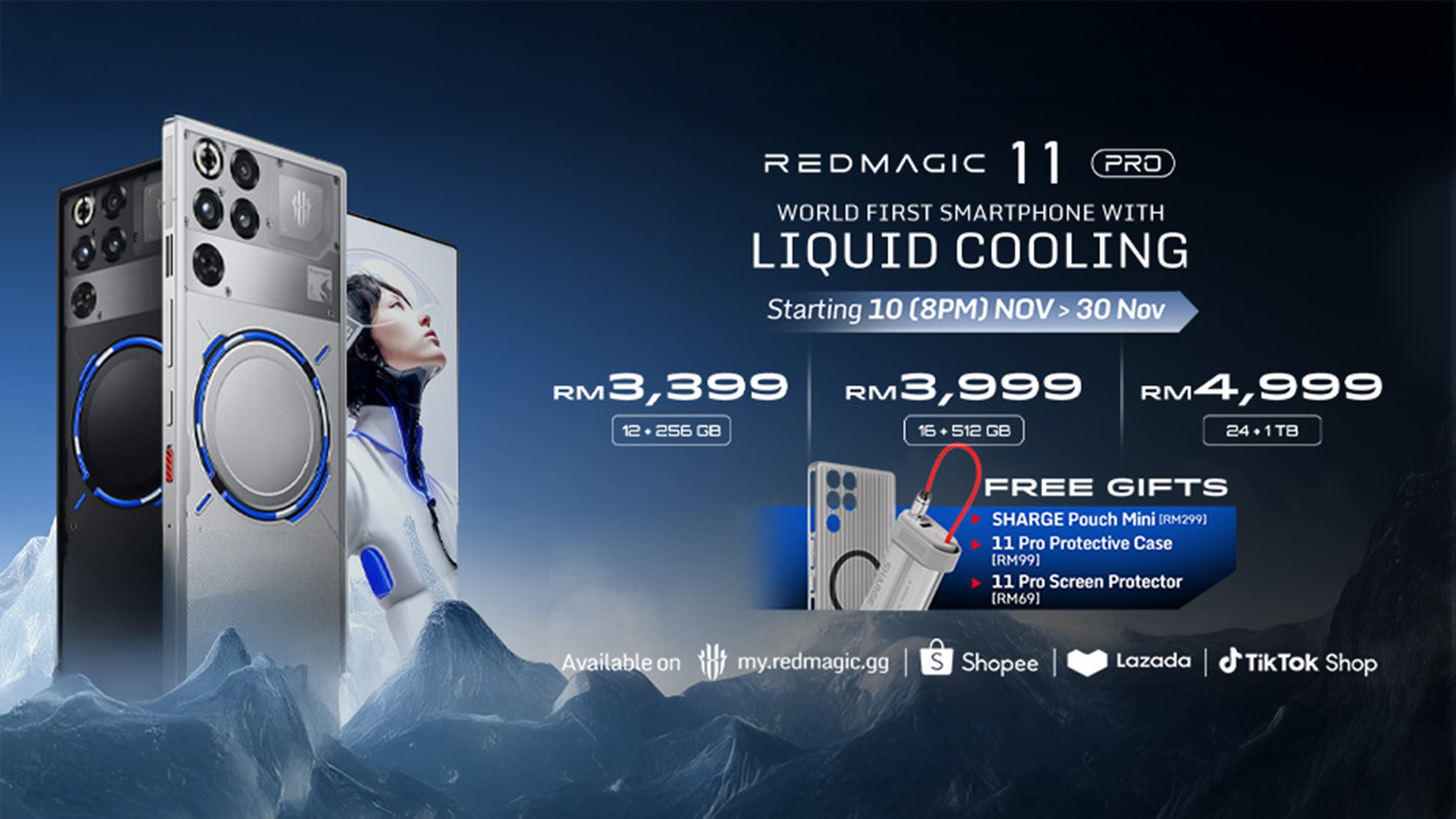 RedMagic 11 Pro将于2025年11月10日晚上8时正式发售。在11月30日前购买的早鸟用户将获得价值高达467令吉的赠品,包括: