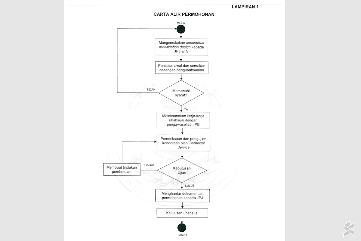 改装要求清单很长,涉及诸多环节:场地、人力、文件准备、初步评估以及改装后的测试。改装后的车辆必须符合一系列国际标准,才能获得JPJ 的合法上路认证。