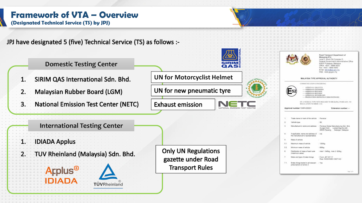 与此同时,仅确保你新改装的电动车在经过马路上的减速带和坑洼时不会散架是不够的。它还需要符合一系列国际标准和法规,尤其考虑到马来西亚自2006年初以来一直是世界车辆法规协调论坛(WP.29)的成员。