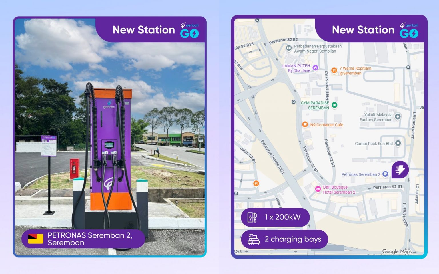 继早前在Careplus Mall部署两台180kW直流充电器后,Gentari持续扩大其在芙蓉的电动车充电网络。