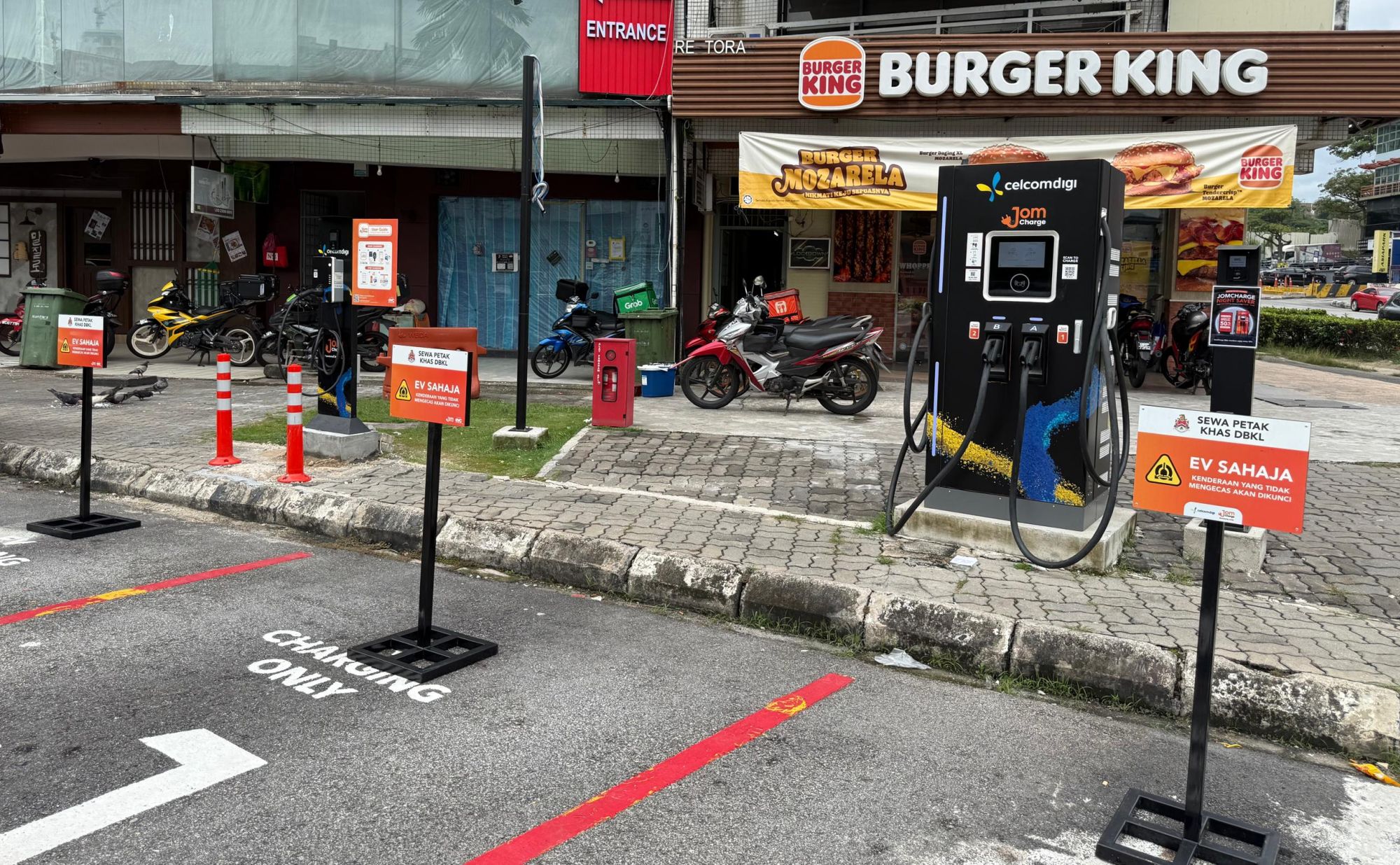 位于Burger King前的全新JomCharge x DBKL电动充电站配备了一台100kW直流充电桩,带有两个CCS2喷嘴,充电费用为每千瓦时1.40令吉。