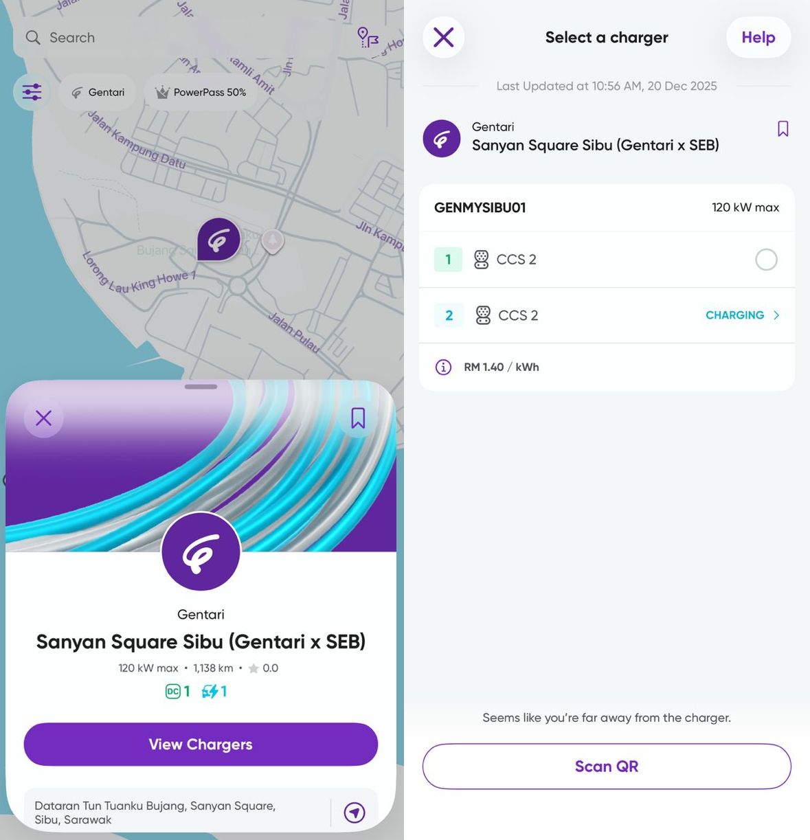 Gentari和SEB还在“Sanyan Square Sibu”安装了一台120kW直流充电桩,配备两个CCS2喷嘴。与诗巫其他直流充电桩不同,该充电桩采用按千瓦时计费的方式,收费为每千瓦时1.40令吉。