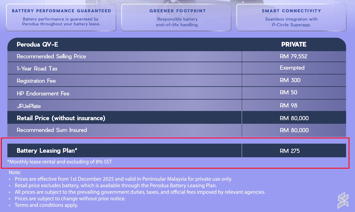 此外,Perodua还通过一系列新的信息图重申,QV-E车主如果在9年合约期满后继续使用电池,则无需支付月费。但是,如果日后需要更换电池,则需要重新签订合约,每月支付275令吉。