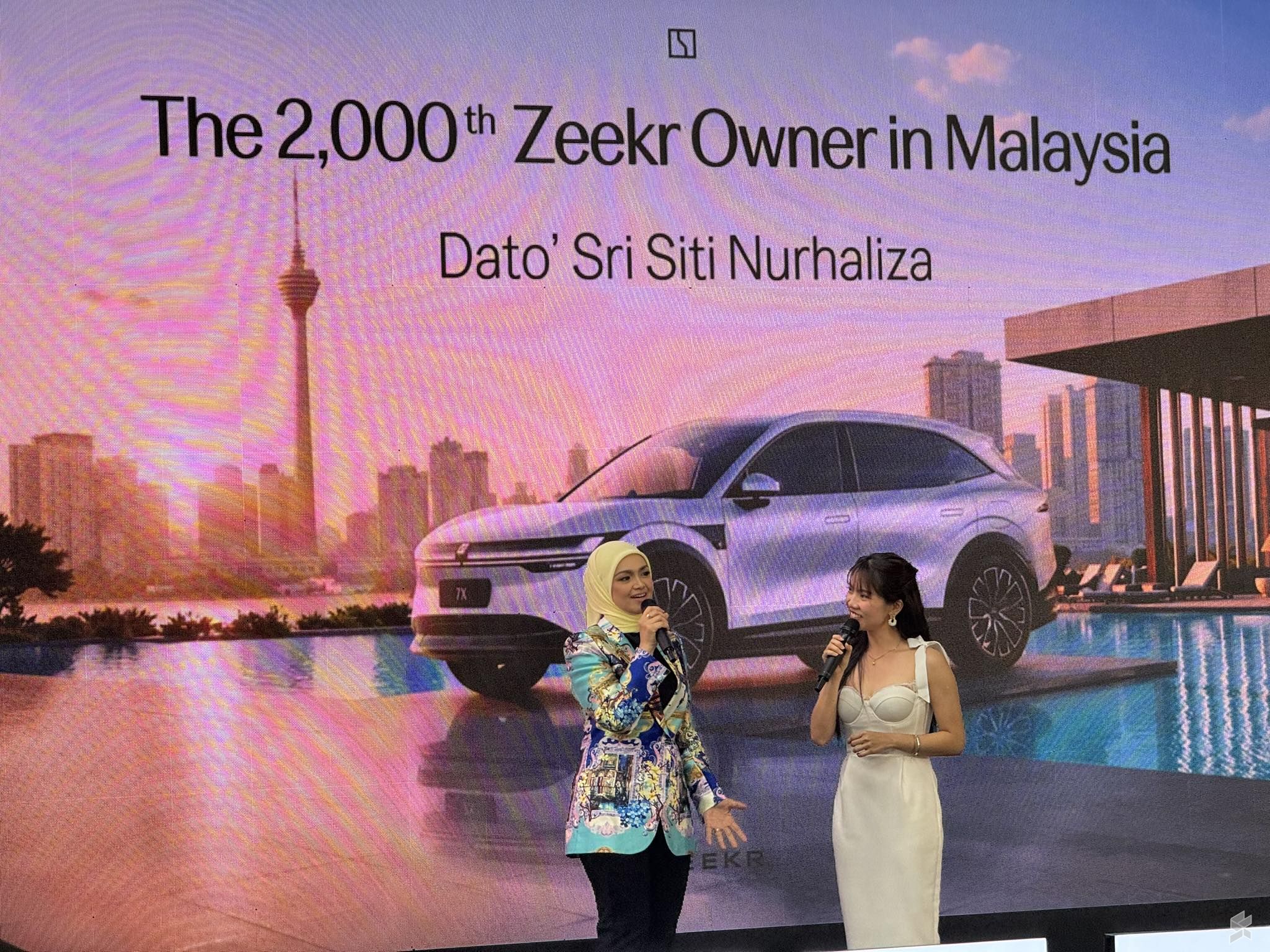 第2000位车主是大马乐坛天后拿督斯里茜蒂诺哈丽莎(Siti Nurhaliza),她喜提一辆Zeekr 7X。