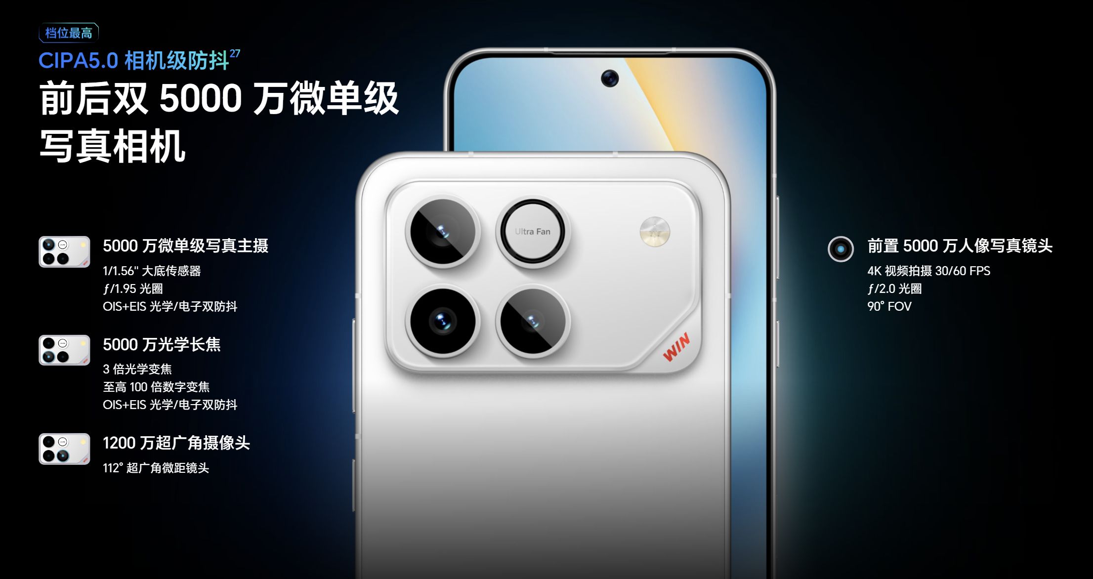 作为一款旗舰智能手机,它支持IP68、IP69和IP69K级别的防尘防水。Win还配备了双扬声器,并号称拥有“AI环绕低音炮”。