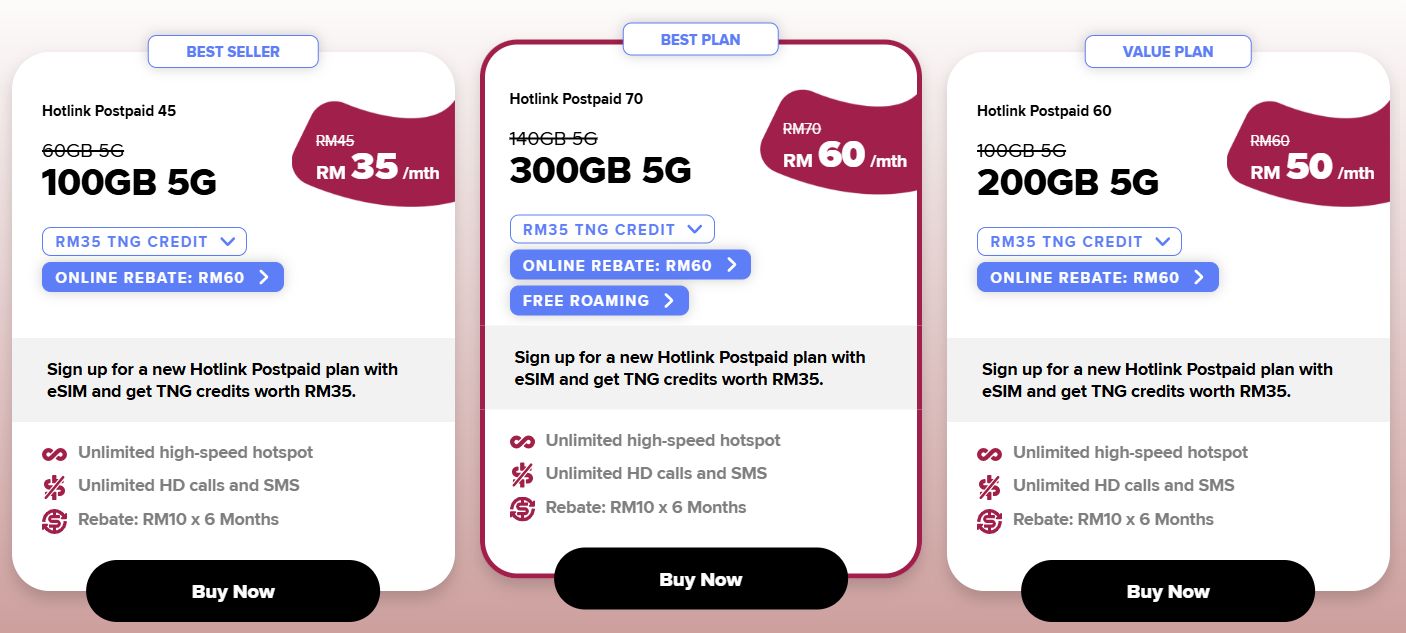 Hotlink Postpaid 70 延续强势表现,获得银奖。目前在回扣优惠下,每月60令吉即可享有300GB 数据(150GB 基本数据 + 150GB 5G 奖励数据),同样不设网速上限,并可在新加坡、泰国及印尼使用数据而无需额外付费。