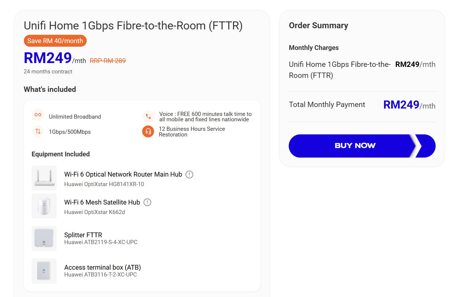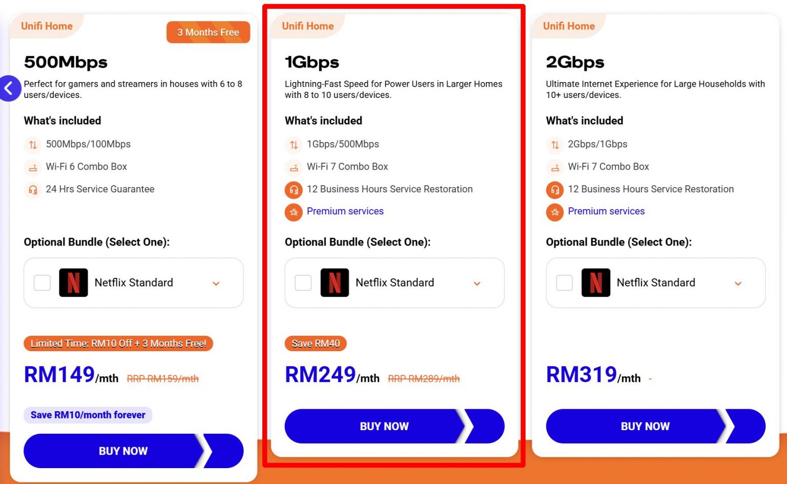 Unifi Home 1Gbps 荣获本年度最佳宽频配套金奖。该光纤配套每月249令吉,包含语音通话服务,并提供12个工作小时的服务修复服务水平协议。