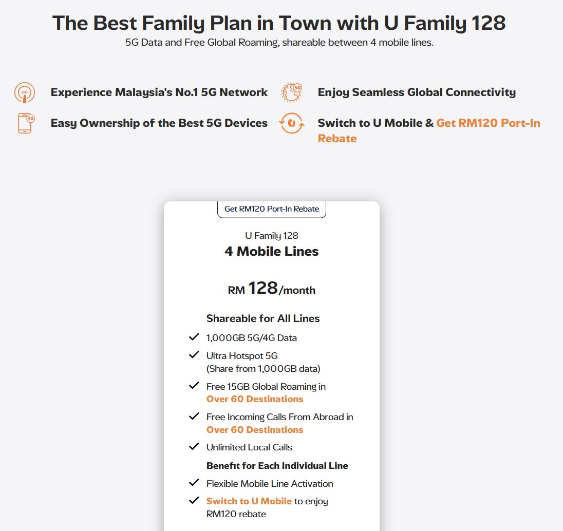 延续去年的冠军地位,U Family 128 再度成为我们心目中的最佳后付配套。每月128令吉,用户可获得无限通话及1000GB 高速5G/4G数据,并可在4条线路之间共享,相当于每条线路每月仅32令吉。