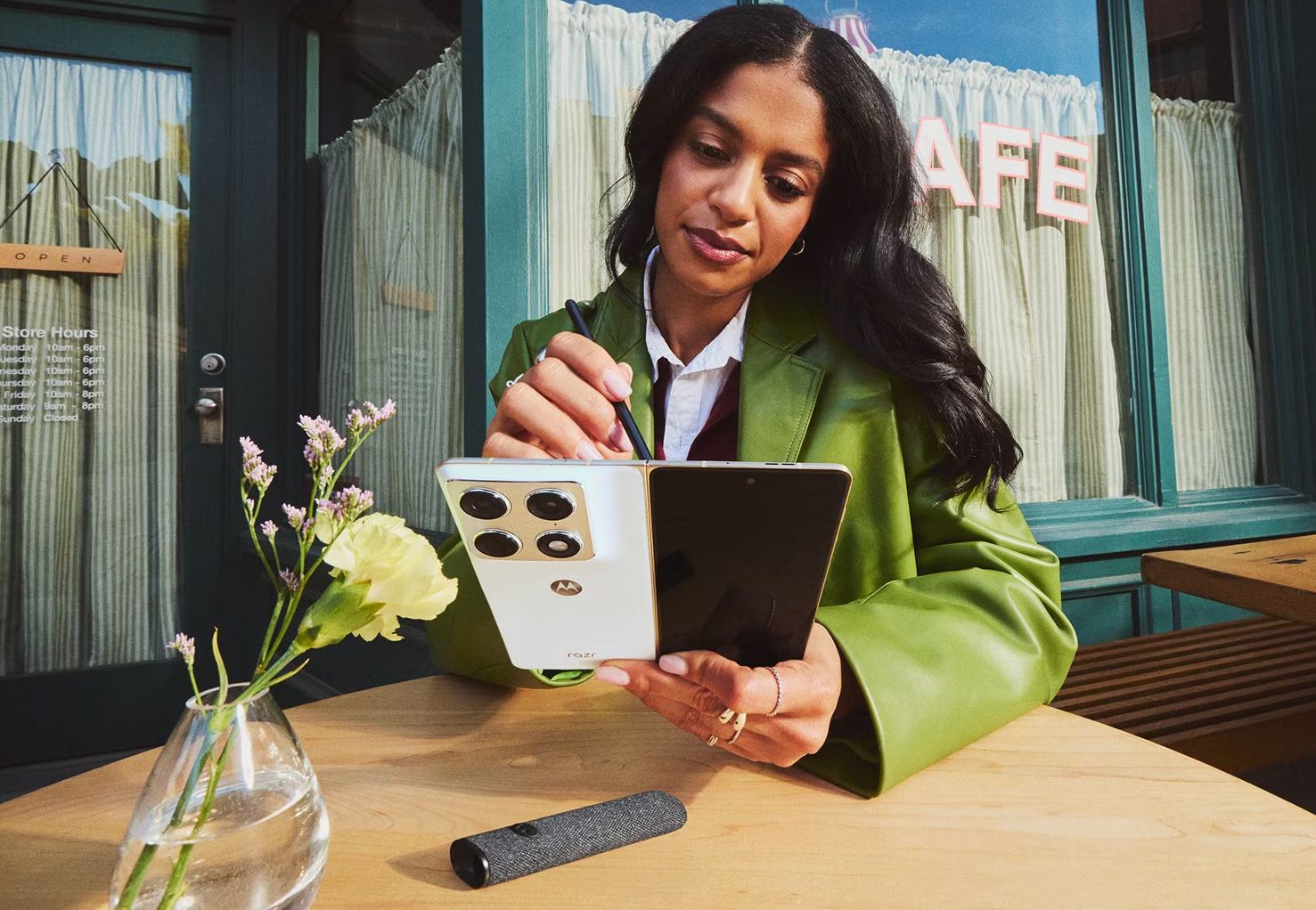 正如目前智能手机品牌普遍的做法,联想为Motorola Razr Fold配备了包括“Catch me up”和“Next Move”在内的设备端AI功能。作为一款面向多任务处理的大屏设备,它支持灵活的布局、自适应界面和直观的操控,并可与Moto Pen Ultra手写笔完美配合。
