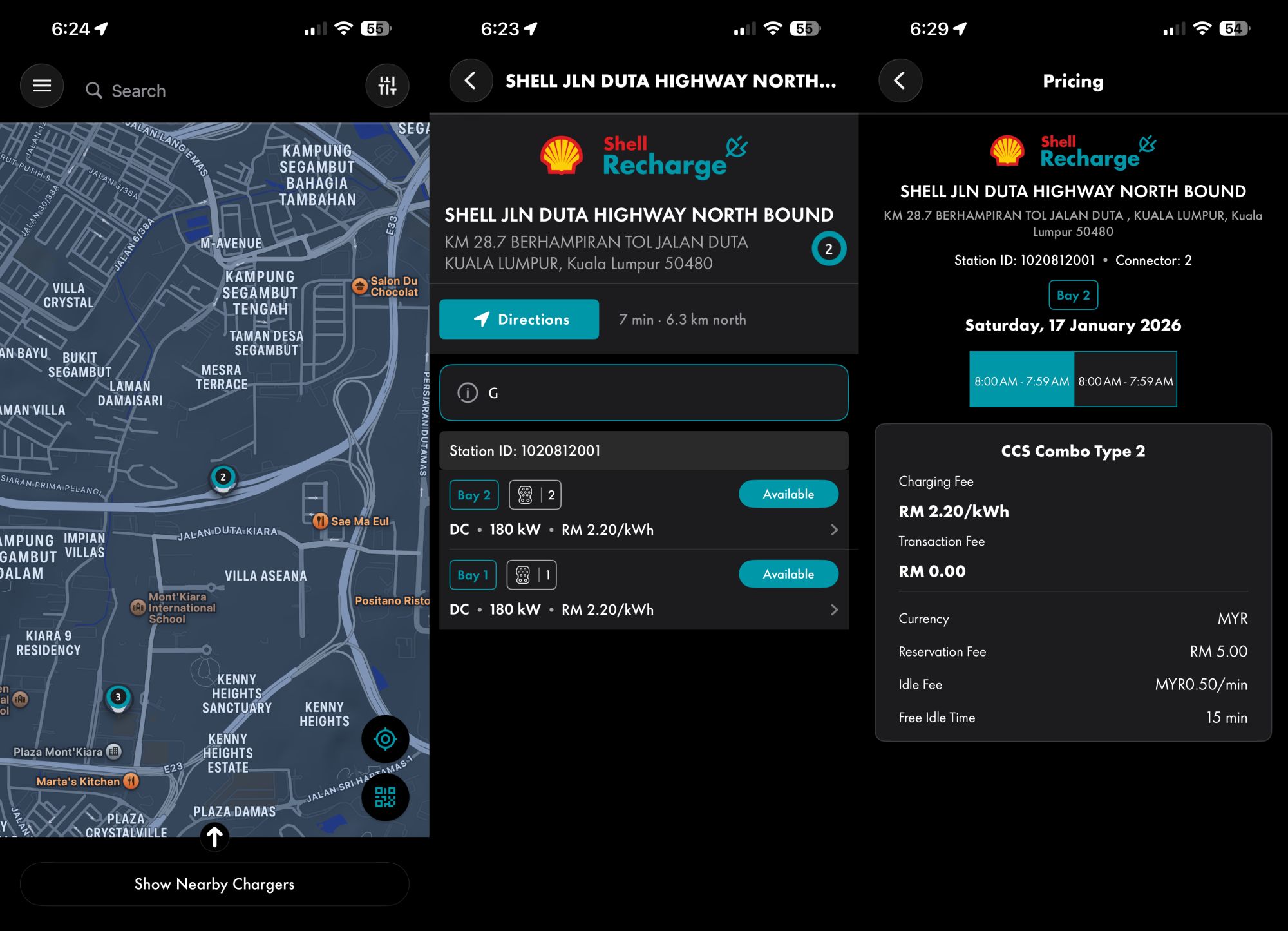 请注意,Shell Recharge在该地点收取5令吉的预约费(reservation fee),以及每分钟50仙的闲置费(idle fee)。