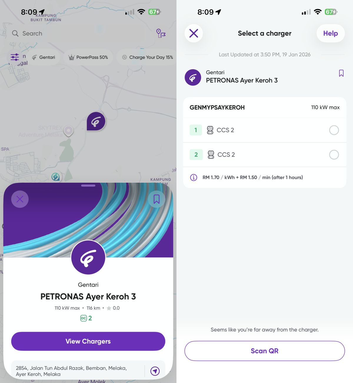 与 Gentari 多数高速公路沿线直流充电站相同,这里的充电价格为每 kWh RM1.70;若你是 Gentari Go Power Pass 订户,则可享有 50% 折扣,即每 kWh RM0.85。