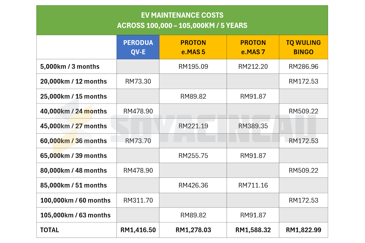根据时间表,QV-E所需的预防性保养项目与马来西亚多数电动车相当常见: