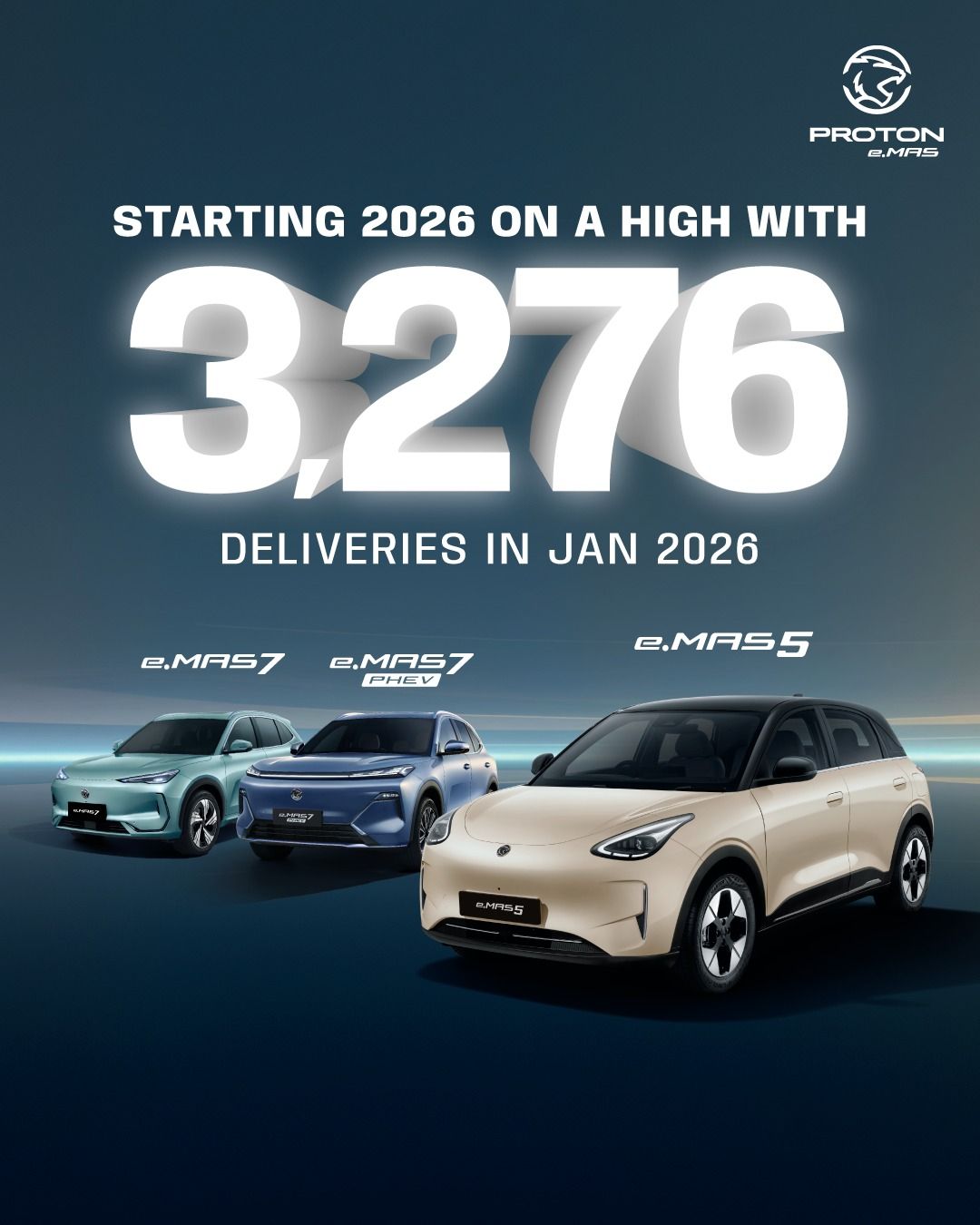 宝腾新能源科技公司(Pro-Net)以强劲势头开启了2026年,1月份交付量创下3276辆电动车的纪录,这几乎是上个月交付量的三倍,也是马来西亚单一品牌单月电动车交付量的最高纪录。